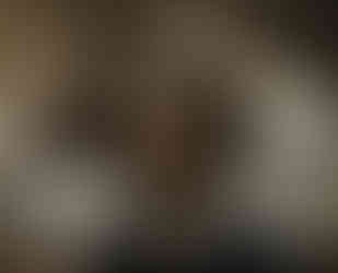 Beneath a disheveled hair, a livid face with tense muscles emerges. His haunted eyes, half-open mouth and outstretched hands all reflect terror. The emptiness of the background brings out all his excentricity. The white tone stands in contrast with his brown hair, his eyes and his beard, emphasizing his gestures and creating an atmosphere of growing tension.